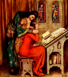 For connoisseurs of the art of Eleanor Forescue-Brickdale, we have prepared sets of 16 Greeting Cards displaying each of her major colour images for Eleanor Fortescue-Brickdale's Golden Book of Famous Women and on the left, we show an example of how these Greeting Cards appear.