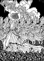 This illustration is one of a suite prepared for Mopsa the Fairy - it is an example of the superbly detailed monotone images that were designed by Walker.