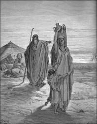 The Expulsion of Ishmael and his Mother And Abraham rose up early in the morning, and took bread, and a bottle of water, and gave it unto Hagar ... and the child, and sent her away ...