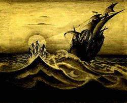 For connoisseurs of Nielsen's work, we have prepared sets of 35 Greeting Cards displaying a selection of his concept designs for The Little Mermaid and on the left, we show an example of how these Greeting Cards appear.