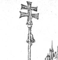 absorbed in his devotion - who has planted his staff with the double cross in the ground