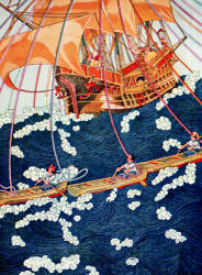 A Marine May Pole The gay flashing tow-ribbons, winding about the McGinty's mast, formed a marine maypole. |