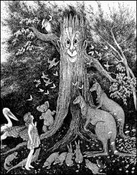 Outhwaite's designs - in both colour and monotone - are superb with wonderful representations of various occupants of the fairy realm and an inspired infusion of Australian native fauna and flora. |