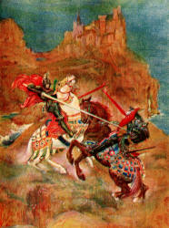 They prayed to Christ with much fervour Their inward foes to Quell: Sans fear they rode in high ardour Good issue to compel. Glory to Holy Trinity That be of most avail! Honour to Heaven's sweet Ladye That prays for us, Salin Fayle To Joseph, Hight Arimathie, And to the Holy Greal! |