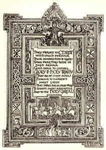 To the right, we show Evelyn Paul's illumination - in the early medieval Celtic style - for the title page of The Romance of Tristramof Lyones and La beale Isoude. |
